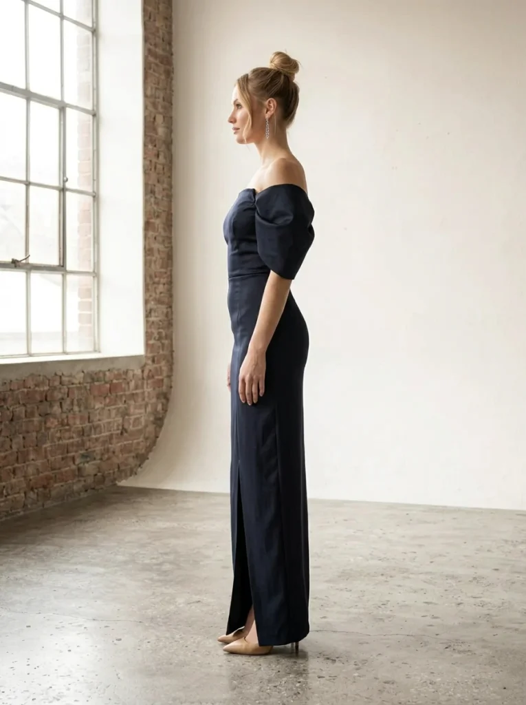 Bu elbise, standart kalıplarla sınırlı kalmaz. Vücut ölçülerinize göre özel olarak dikilir; böylece size mükemmel oturan, ikinci bir cildiniz gibi hissettiren bir elbiseye sahip olursunuz. Farklı renk ve kumaş seçenekleri için bizimle iletişime geçebilirsiniz.