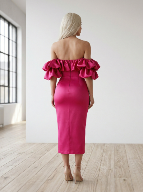 Fuşya Straplez Kalem Elbise — Midi Boy Şık Davet Elbisesi